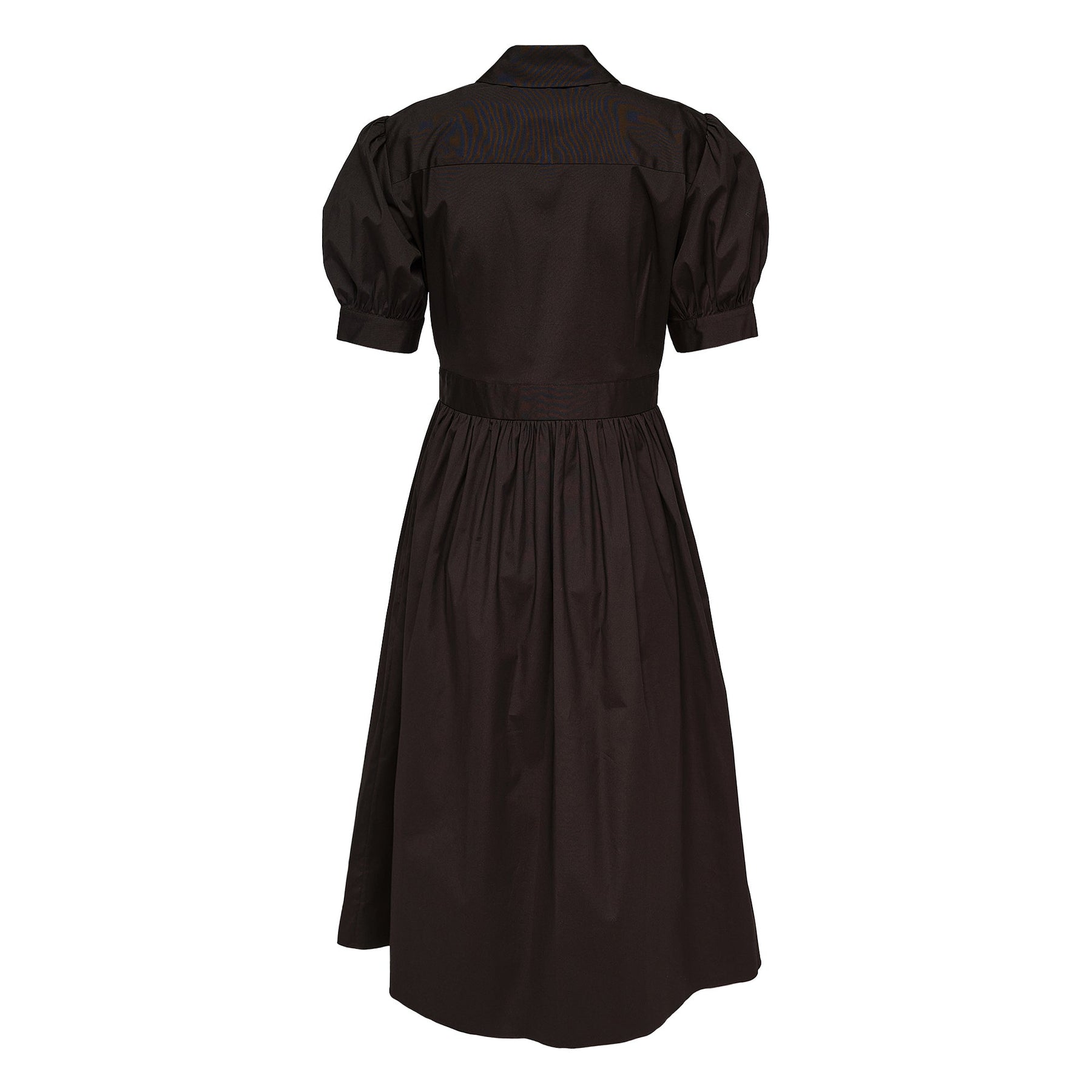 Colorful floral appliques pop on this black shirt dress, crafted in stretch-cotton with short puff sleeves and a tie waist.