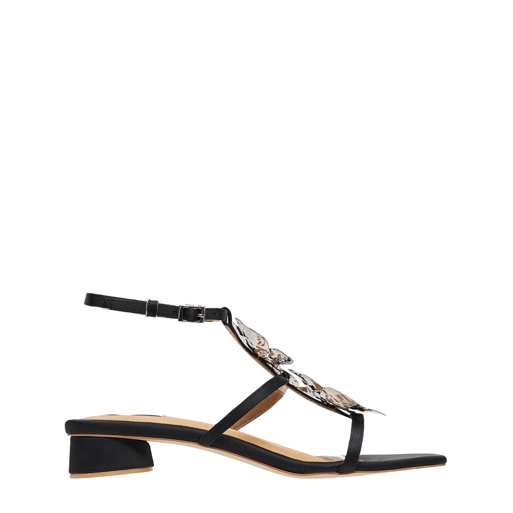 Pace Shoes Cherie Amour Heels deliver romantic elegance with contemporary comfort for everyday sophistication. Crafted with delicate butterfly-inspired embellishments and a comfortable low block heel, perfect for extended wear. The ankle strap design and thoughtful detailing create a feminine silhouette that transitions seamlessly from day to evening.