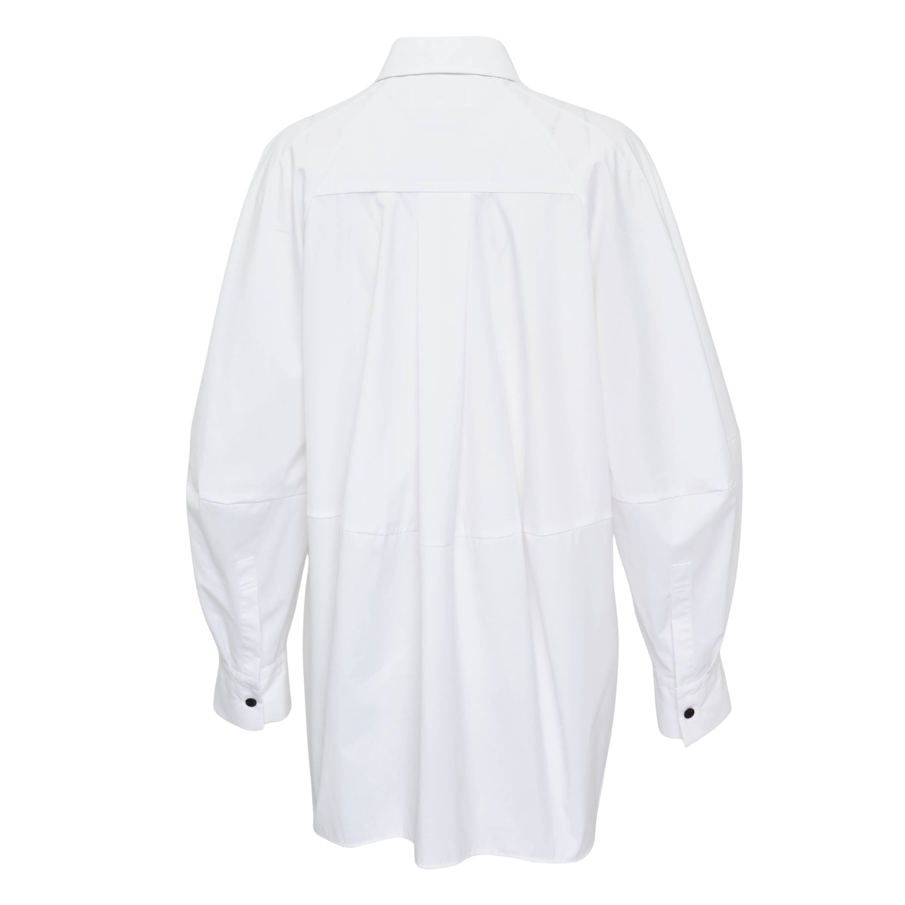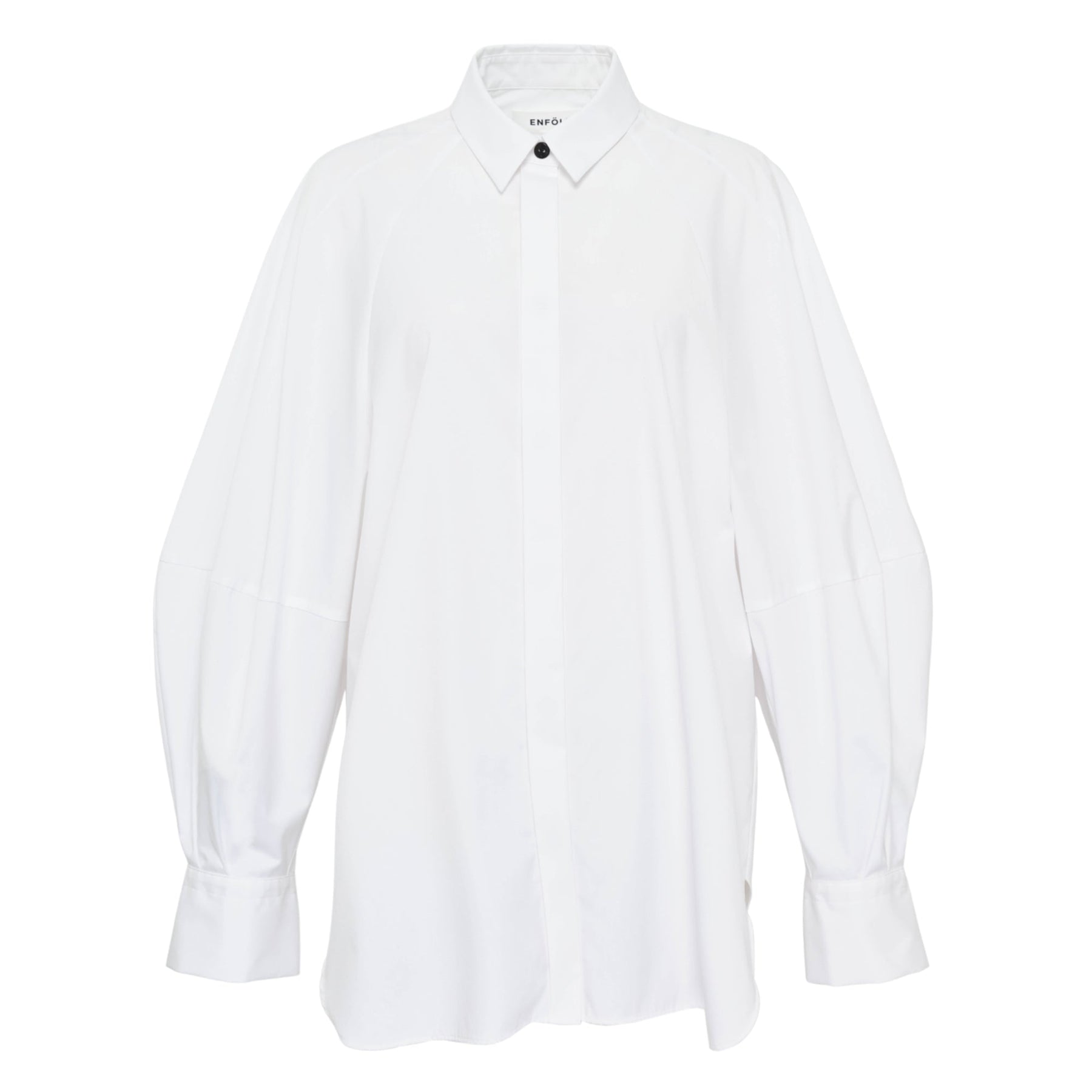The ENFOLD Circular 3D Shirt delivers contemporary minimalism with innovative sculptural construction and architectural silhouette. Crafted from premium cotton poplin in crisp white, featuring the brand's signature three-dimensional pattern work and precise tailoring. The oversized sleeves and structured collar create a modern statement piece that embodies ENFOLD's avant-garde aesthetic.
