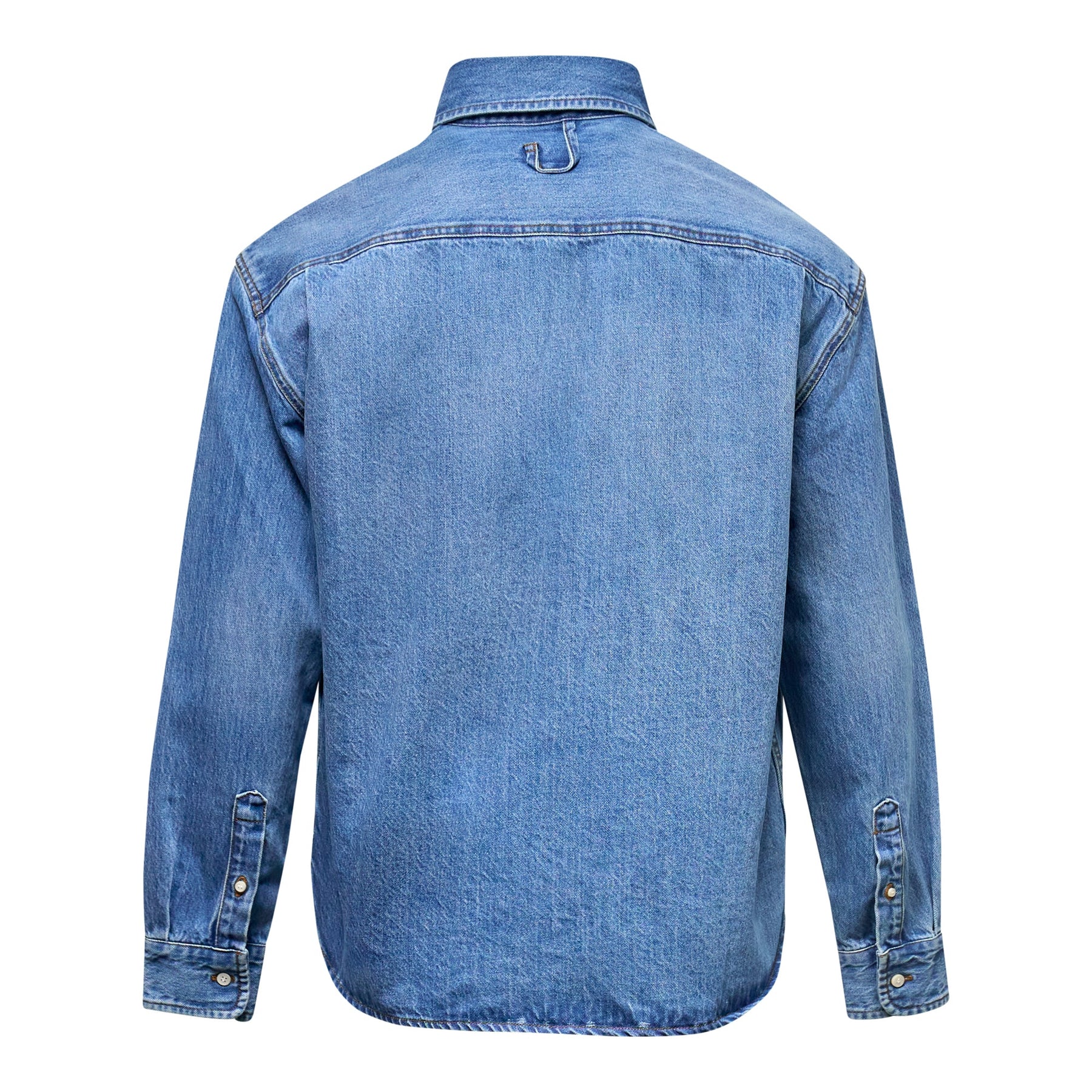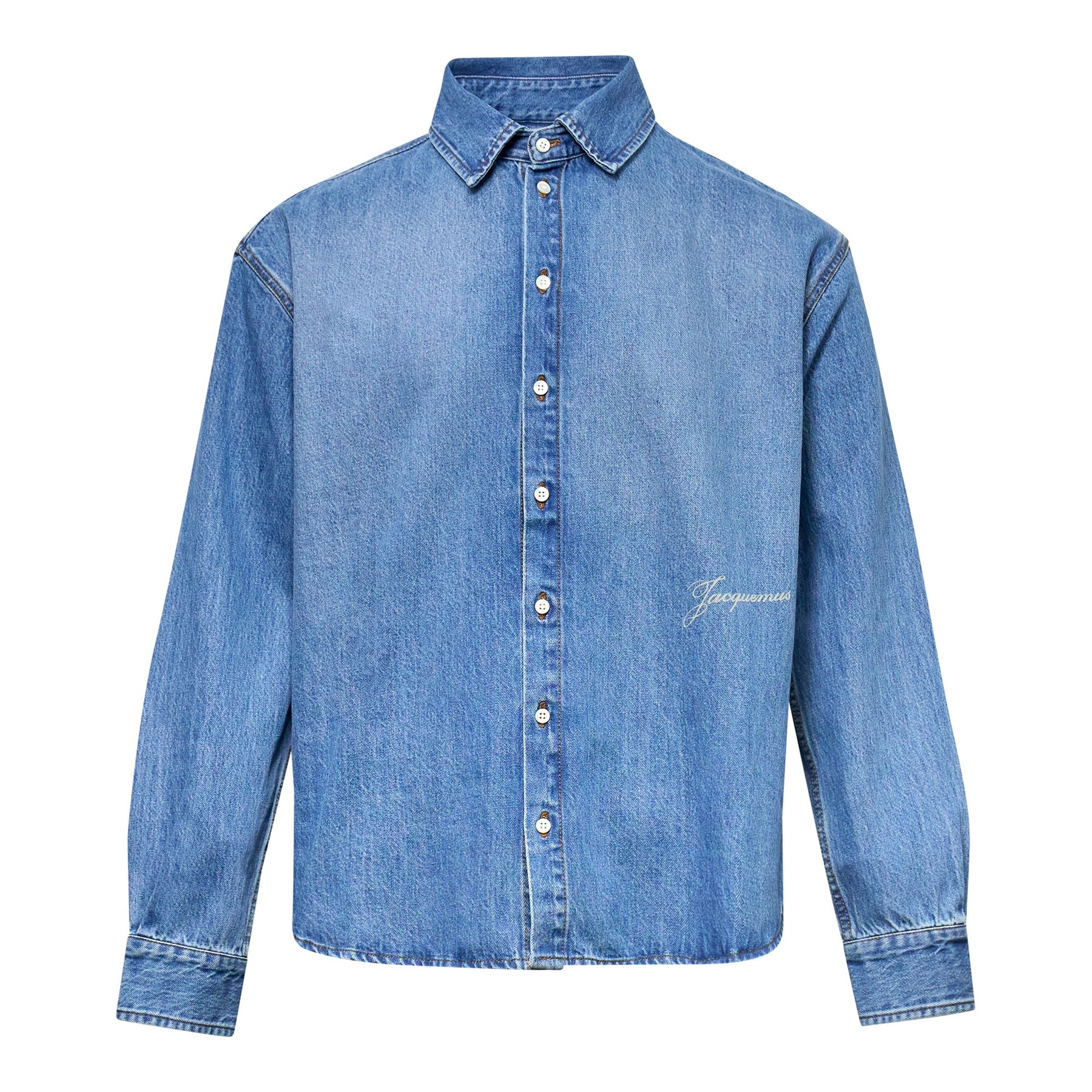 JACQUEMUS La Chemise De-Nimes Simon delivers contemporary French minimalism with premium denim construction. Crafted from soft-washed denim in classic medium blue wash, featuring clean tailoring and the brand's signature understated luxury aesthetic. The relaxed fit and refined denim fabrication create a versatile wardrobe essential that bridges casual and sophisticated styling.
