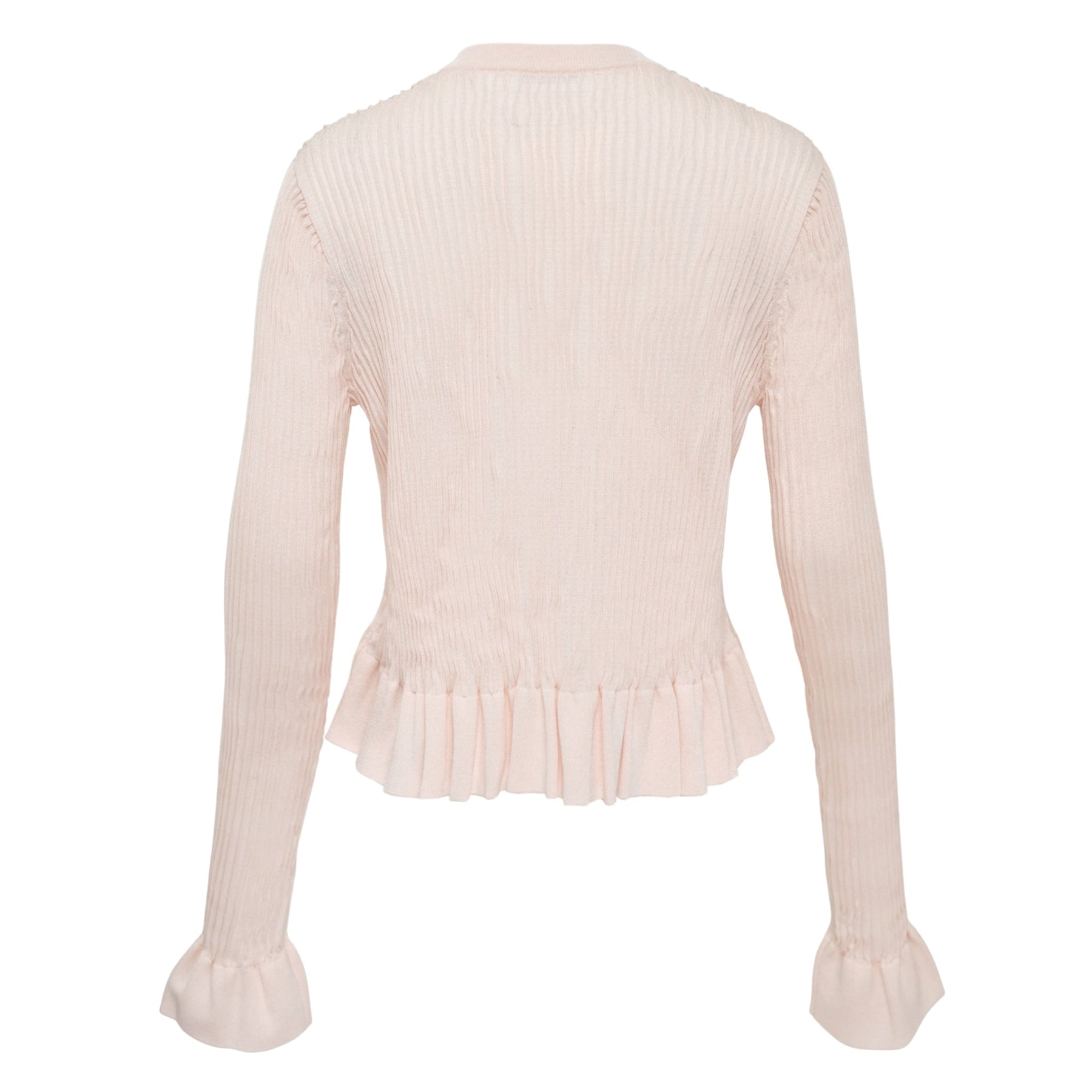 The Jil Sander Cardigan With Frill Bottom delivers minimalist elegance with feminine detailing and sophisticated craftsmanship. Crafted from premium ribbed knit in soft blush pink, featuring signature clean lines enhanced by delicate ruffled trim at the hem and cuffs. The refined silhouette and subtle romantic touches create timeless luxury for the modern wardrobe.