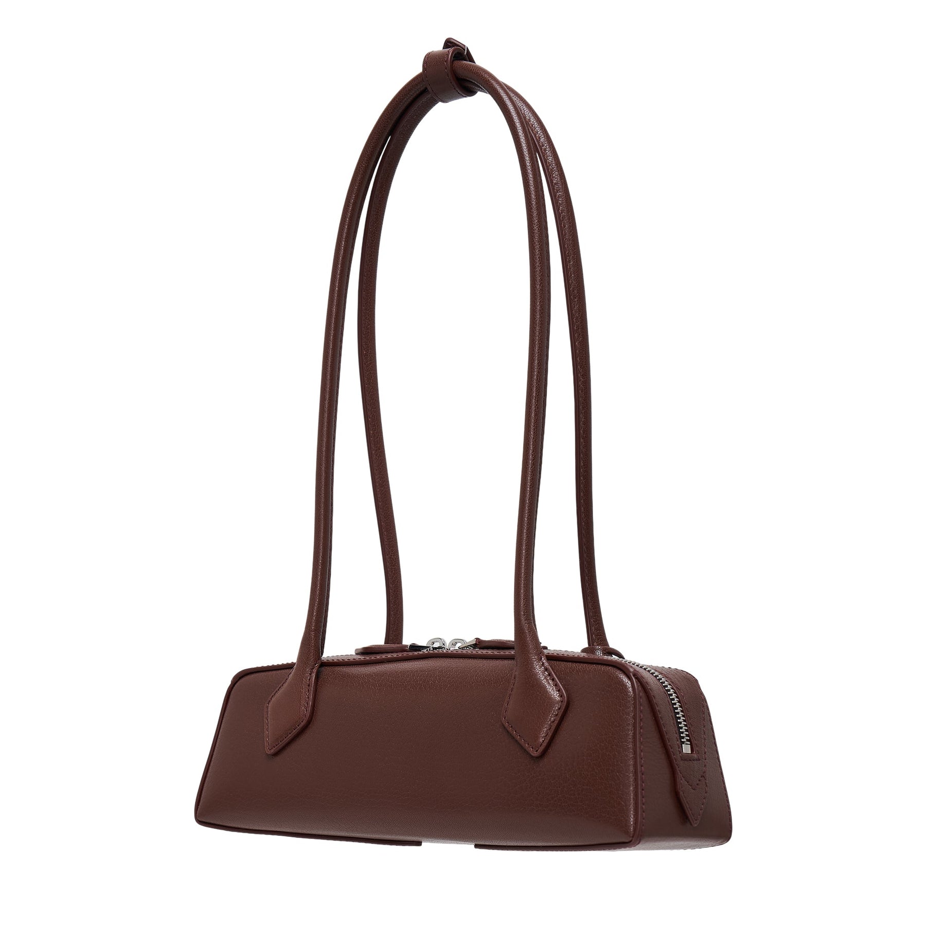 ALAÏA Le Teckel Small Vegetal Tannin delivers sculptural elegance with artisanal French leather craftsmanship. Crafted from premium vegetable-tanned leather in rich chocolate brown, featuring the signature tubular silhouette inspired by dachshund forms. The distinctive architectural shape and luxurious hand-finished construction create a statement piece that embodies ALAÏA's couture heritage.