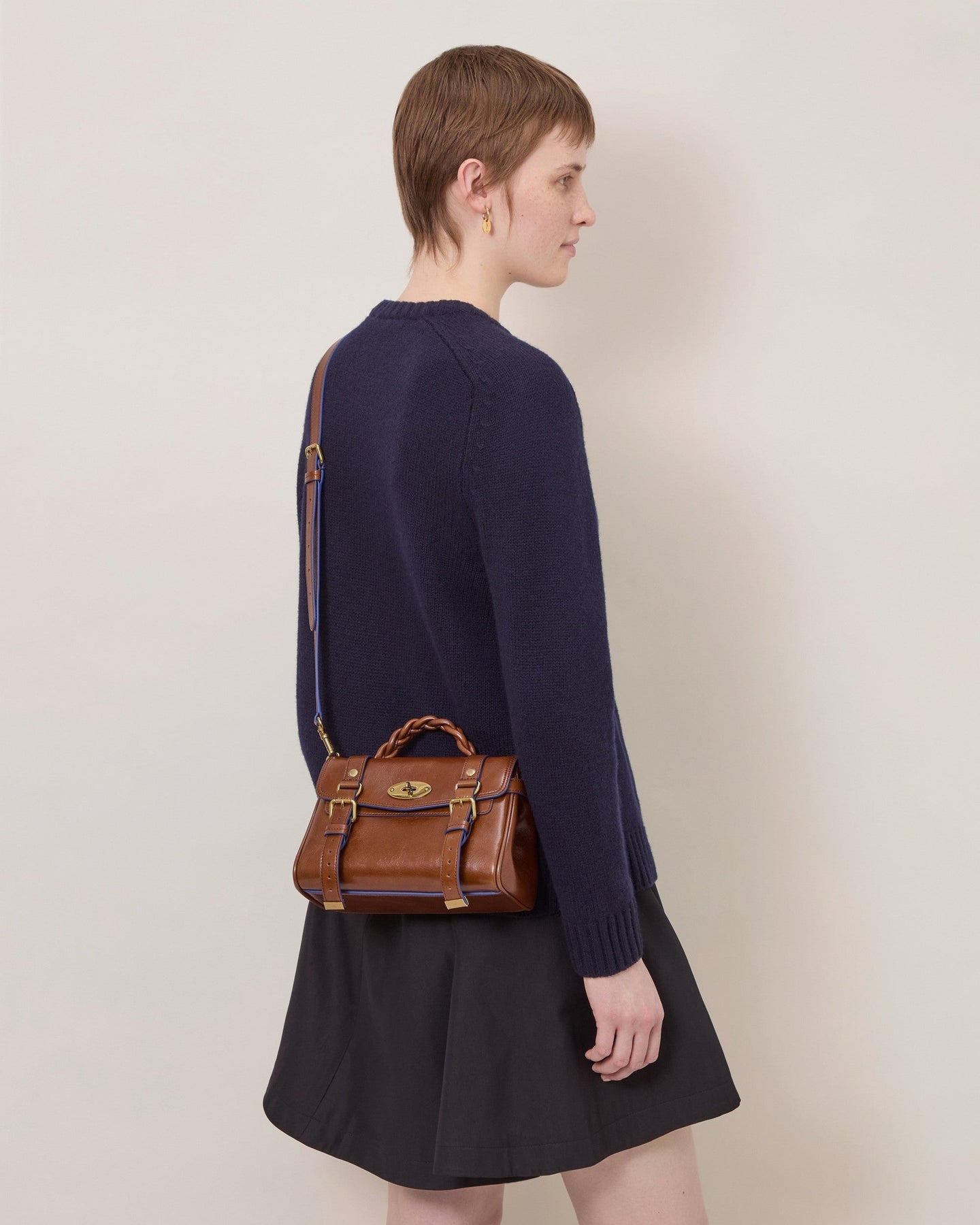 The Mulberry Mini Alexa Valentine's Day delivers iconic British luxury in a compact, versatile silhouette perfect for day-to-night styling. Crafted from premium leather in rich cognac brown with signature postman's lock closure and braided top handle detailing. The structured design and gold-tone hardware create a timeless piece that embodies Mulberry's heritage craftsmanship.