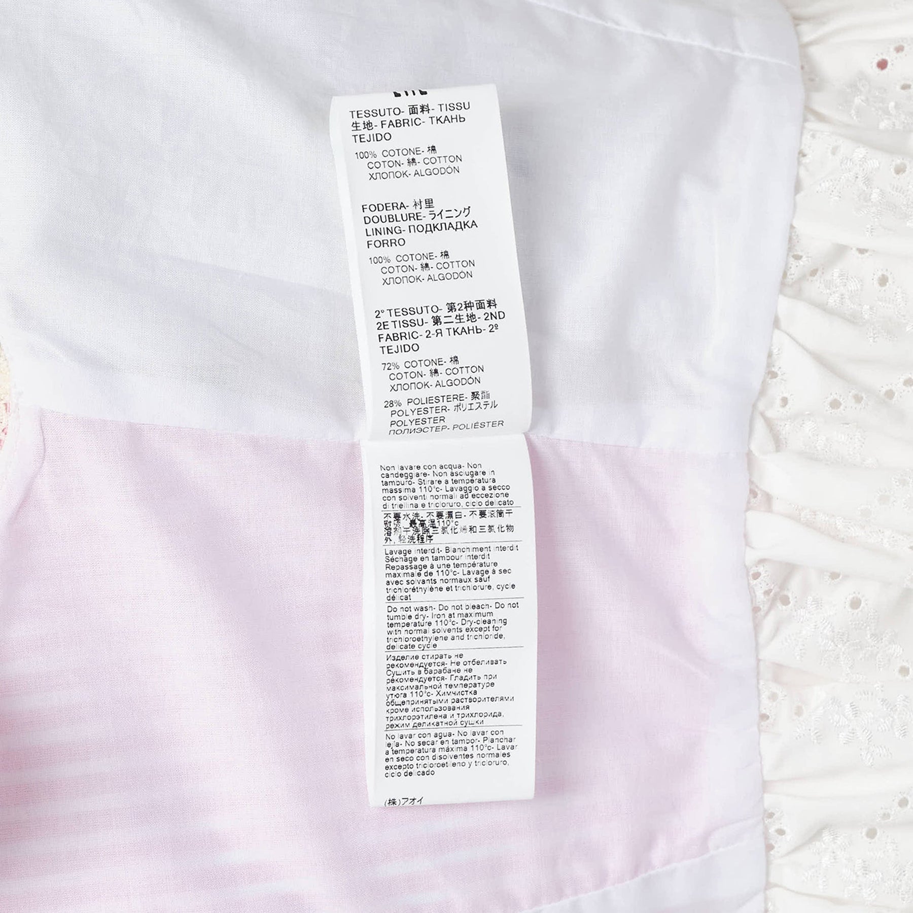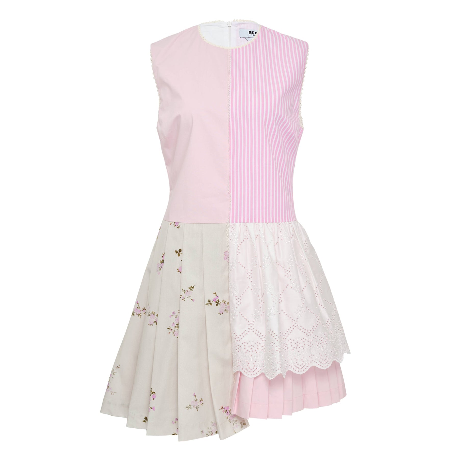 MSGM Patchwork Floral Dress delivers contemporary Italian design with mixed-print artistry and feminine silhouette. Crafted from lightweight cotton blends featuring contrasting panels of pink stripes, white floral embroidery, and delicate eyelet details. The sleeveless construction and tiered asymmetric hem create a distinctive statement piece with the brand's signature playful aesthetic.