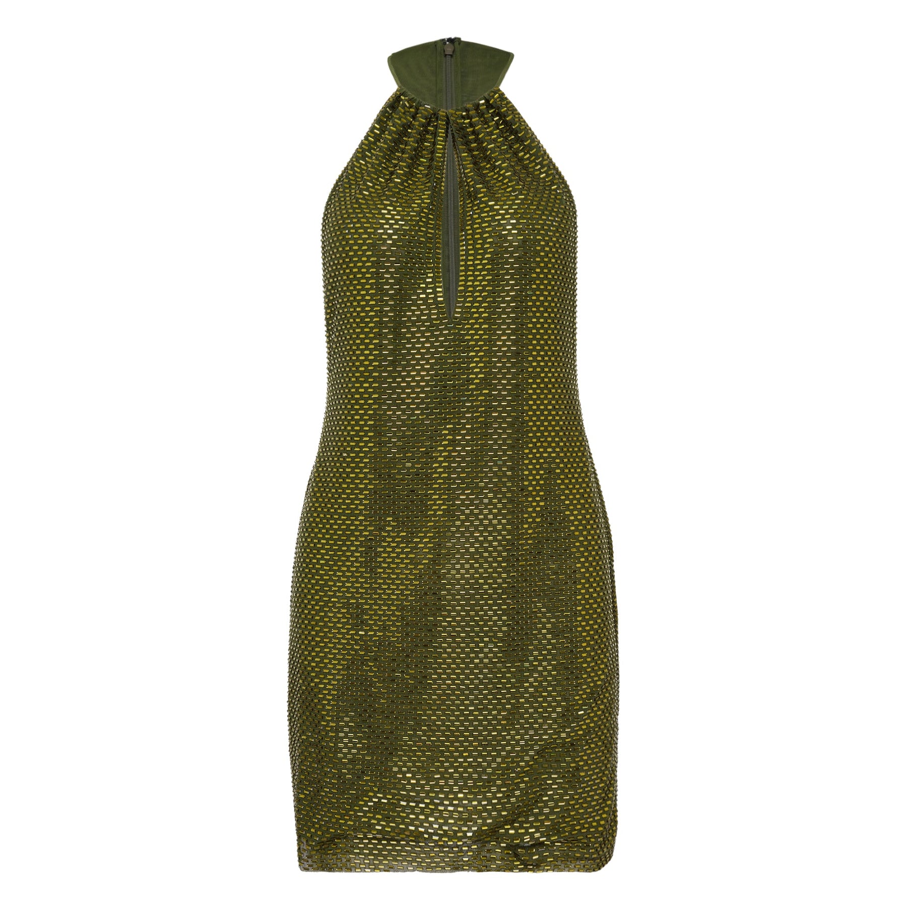 Self-Portrait Olive Rhinestone Mini Dress delivers glamorous sophistication with contemporary femininity and sparkling embellishments. Crafted from luxurious woven fabric in rich olive green, featuring thousands of hand-applied rhinestones that create stunning light-catching texture throughout. The halterneck silhouette and body-contouring fit showcase Self-Portrait's signature party-ready aesthetic with modern elegance.