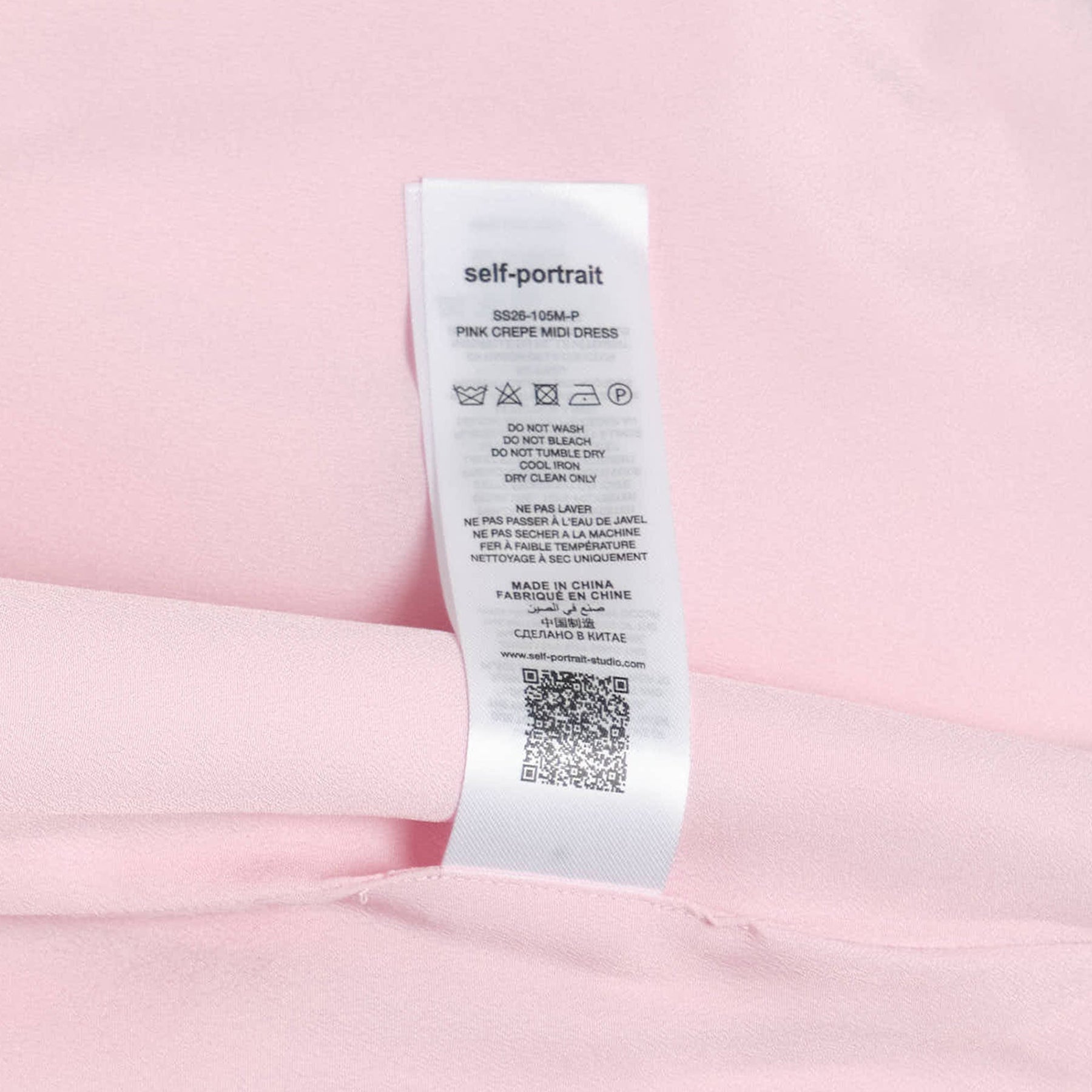 The Self-Portrait Pink Crepe Midi Dress delivers contemporary femininity with sophisticated tailoring and elegant proportions. Crafted from premium crepe fabric in soft blush pink, featuring a structured bodice with wide shoulder straps and a gracefully flared midi-length skirt. The signature Self-Portrait aesthetic combines modern romance with impeccable construction for versatile occasion wear.