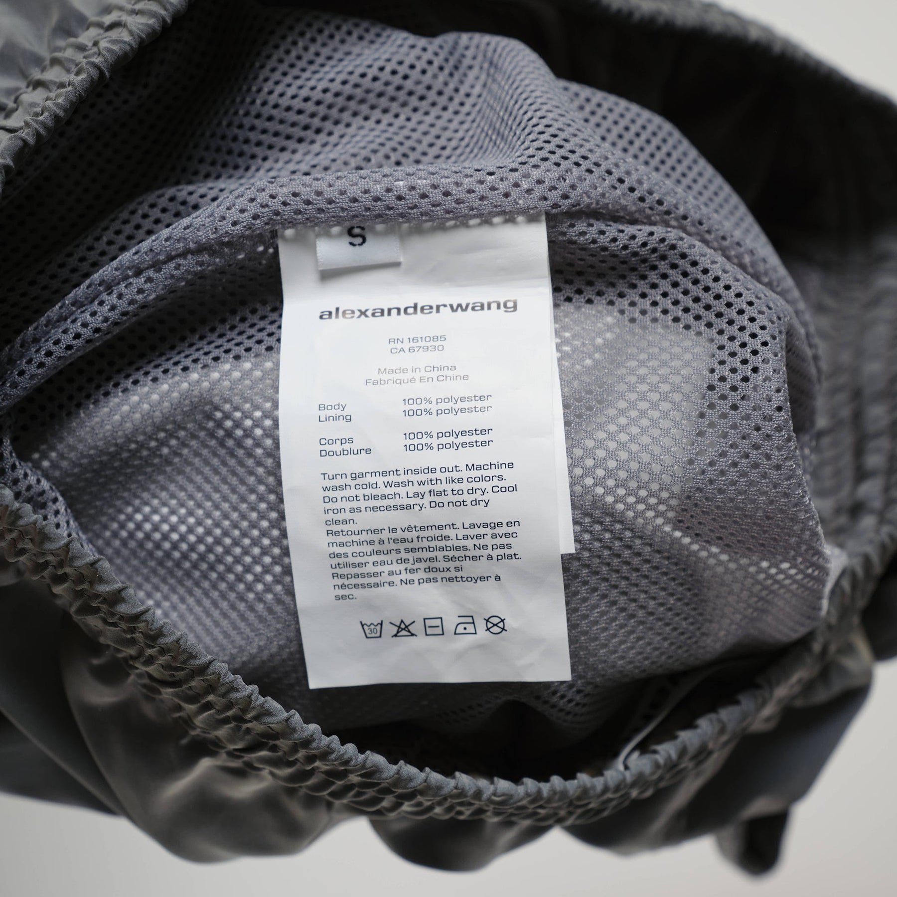 Alexander Wang Reflective Mid-Rise Track Pant delivers contemporary athletic luxury with gradient dip-dye construction and performance-inspired detailing. Crafted from lightweight technical fabric in smoky gray with seamless ombre finish transitioning to deep charcoal. The mid-rise waistband and reflective elements create a modern streetwear essential with signature Wang edge.