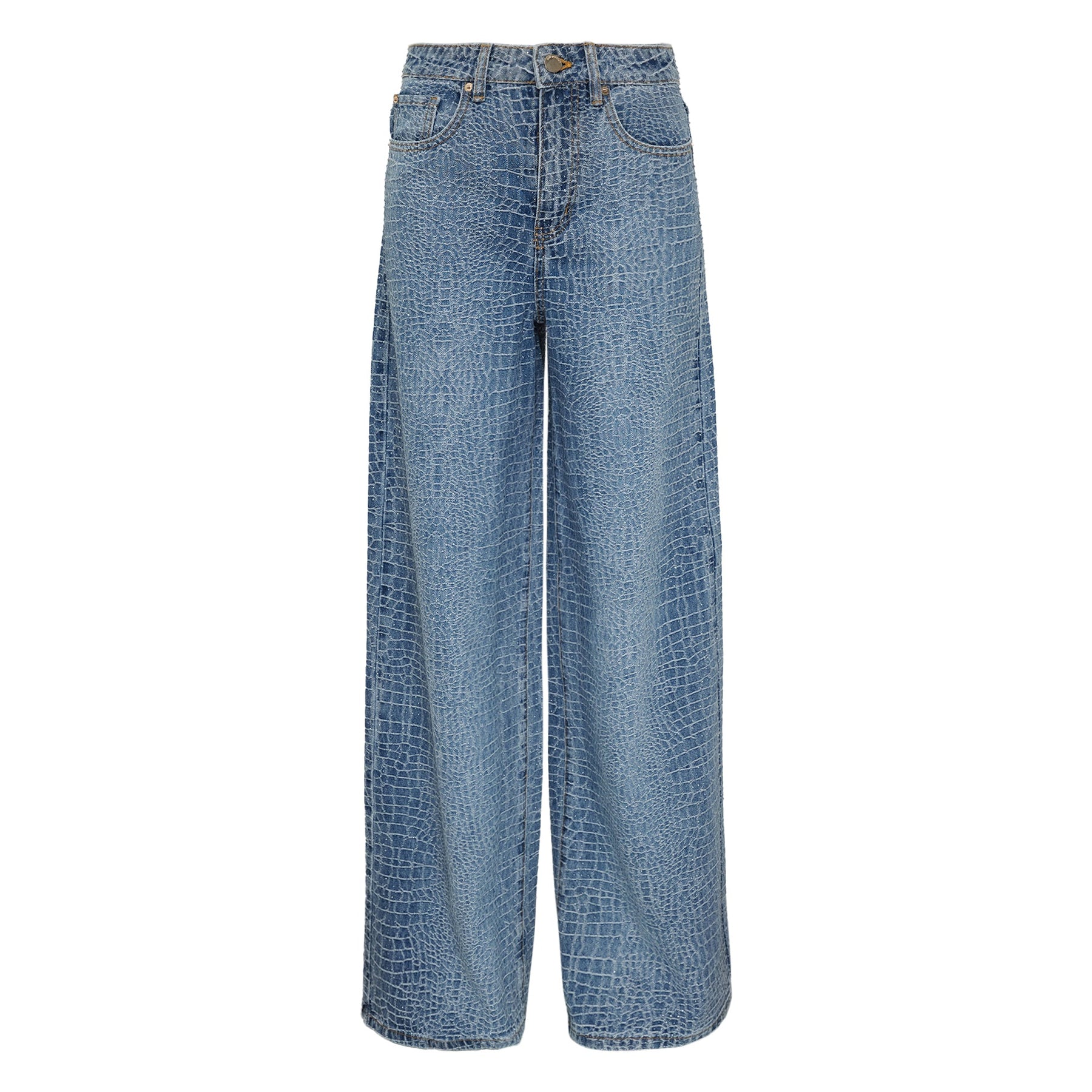 Self-Portrait Rhinestone Croc Effect Wide Jeans deliver contemporary luxury with bold textural detailing and statement silhouette. Crafted from premium denim with an all-over crocodile-embossed pattern and rhinestone embellishments, creating dimensional visual interest. The wide-leg cut and high-waisted design offer modern sophistication with Self-Portrait's signature glamorous aesthetic.