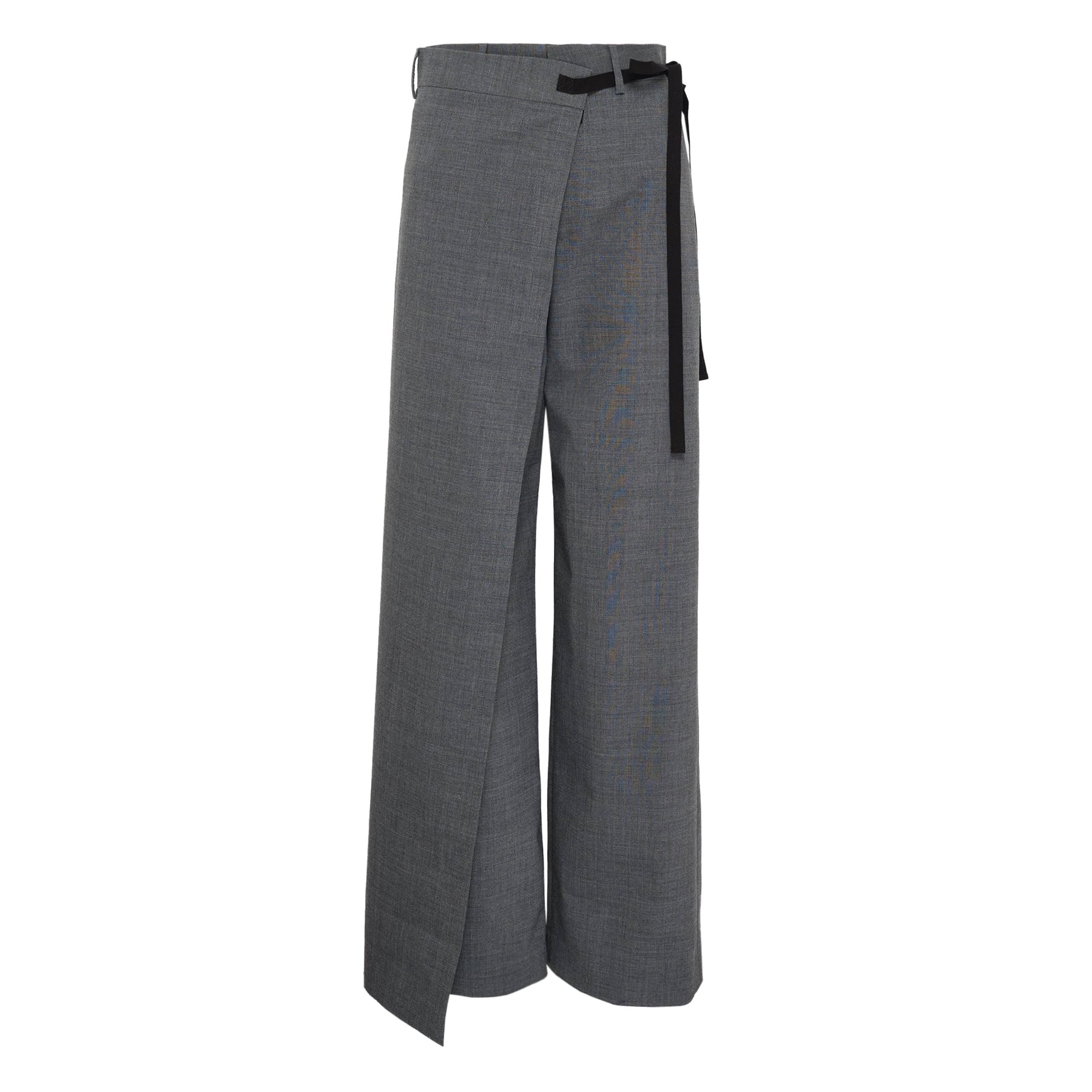 MM6 Side Tie Tailoring Wool Pants deliver contemporary sophistication with architectural draping and asymmetrical construction. Crafted from premium wool suiting in sophisticated charcoal gray, featuring a distinctive side tie closure and wide-leg silhouette. The avant-garde wrap design and deconstructed tailoring reflect MM6's signature minimalist aesthetic with conceptual details.