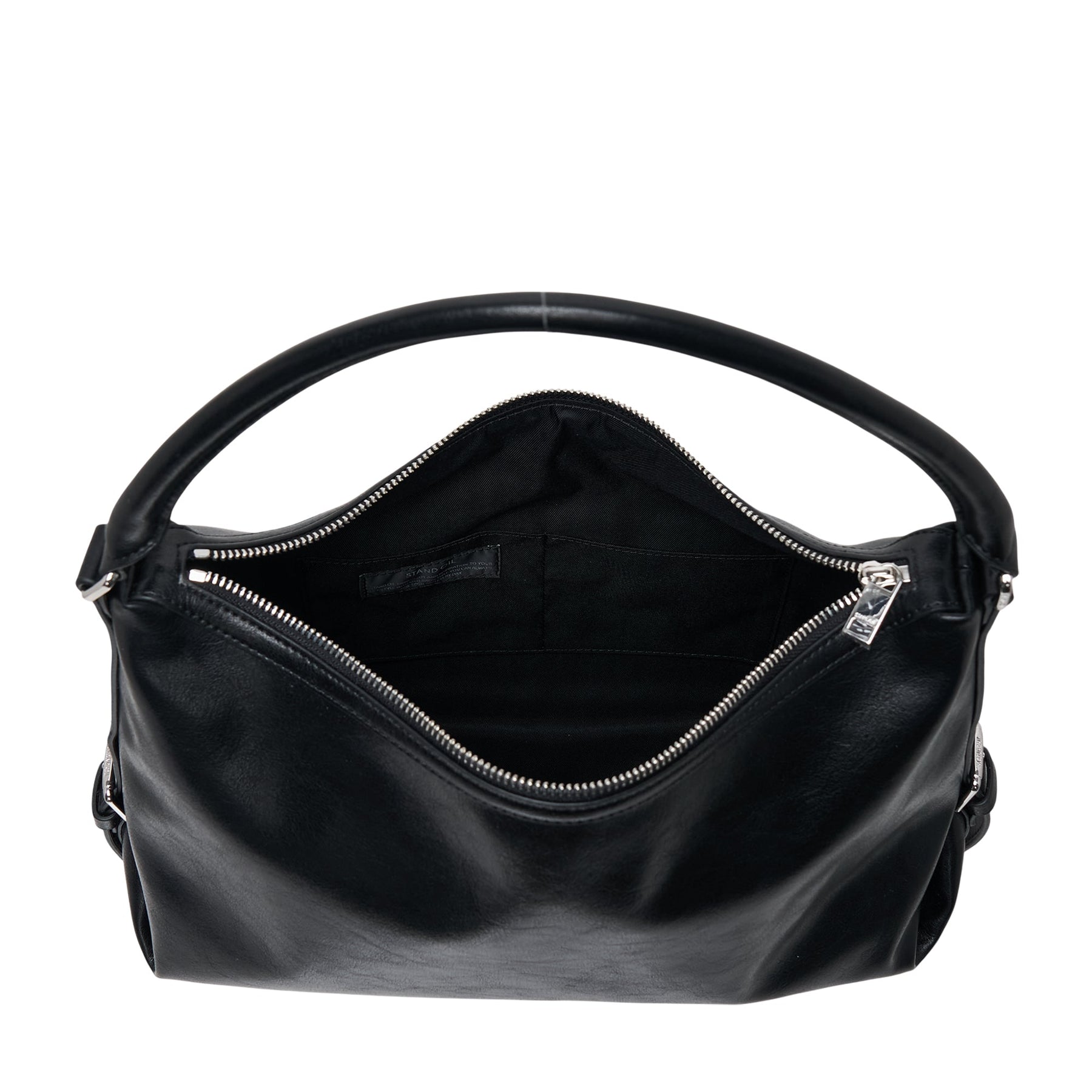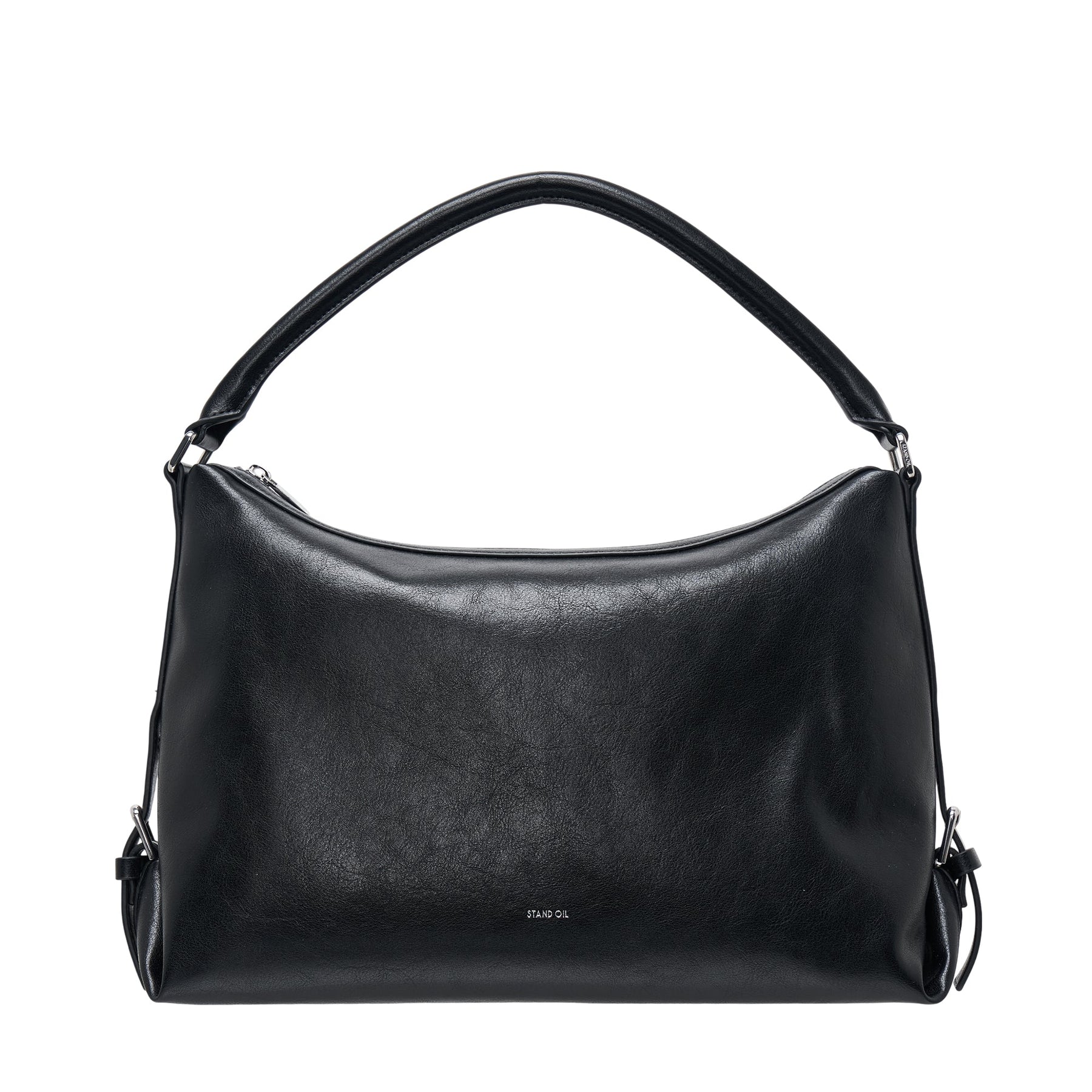The STAND OIL Mushy Bag delivers contemporary elegance with versatile functionality for modern lifestyles. Crafted from premium smooth black leather with polished silver hardware, featuring a structured hobo silhouette with convertible carrying options. The signature soft construction and minimalist aesthetic create an effortlessly sophisticated accessory for any occasion.