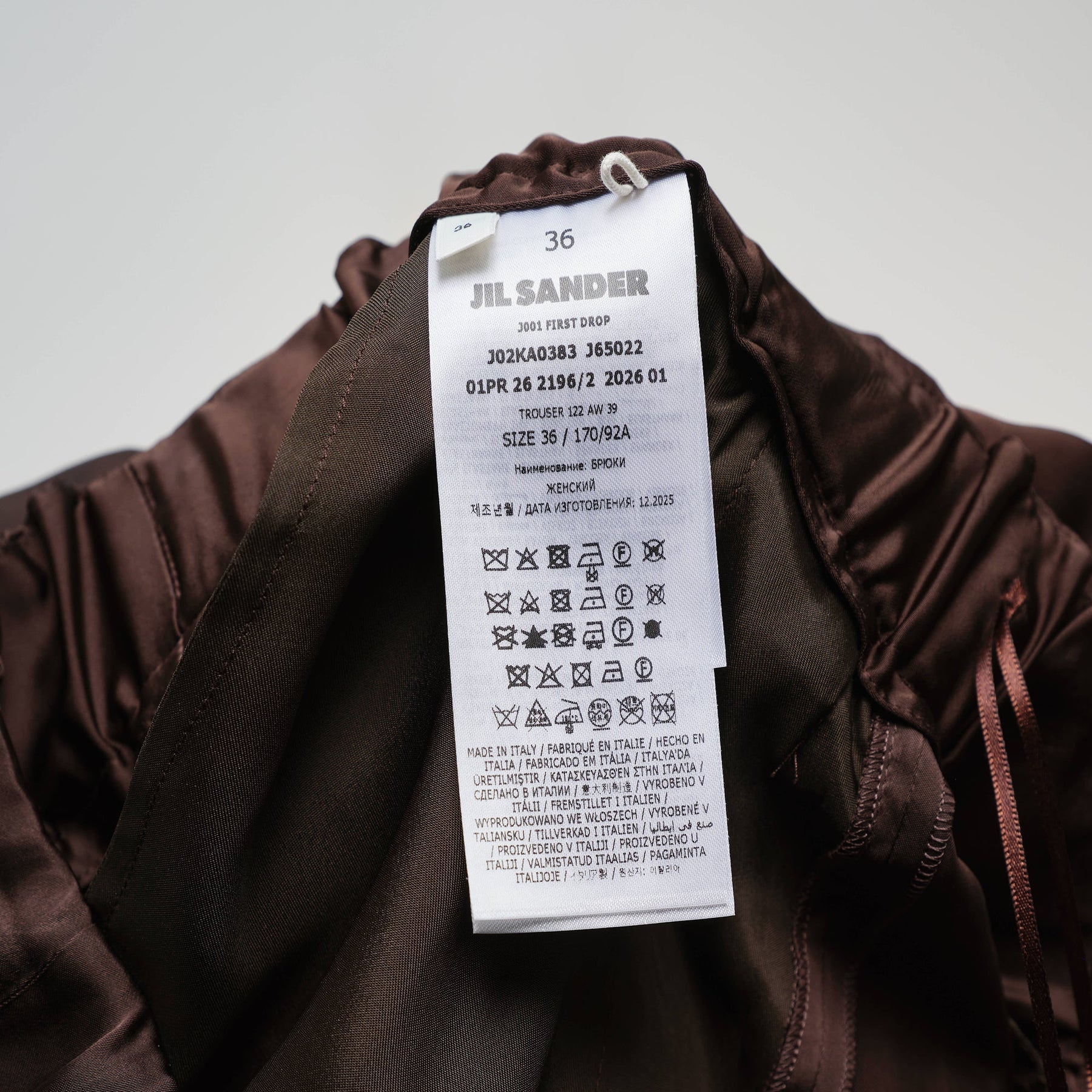 Jil Sander Sustainable Wide Leg Trousers deliver minimalist luxury with eco-conscious craftsmanship and contemporary silhouette. Made from premium sustainable fabric in sophisticated dark brown, featuring the brand's signature clean aesthetic and relaxed wide-leg construction. The flowing silhouette and premium hand-feel elevate any wardrobe with timeless design and responsible fashion.