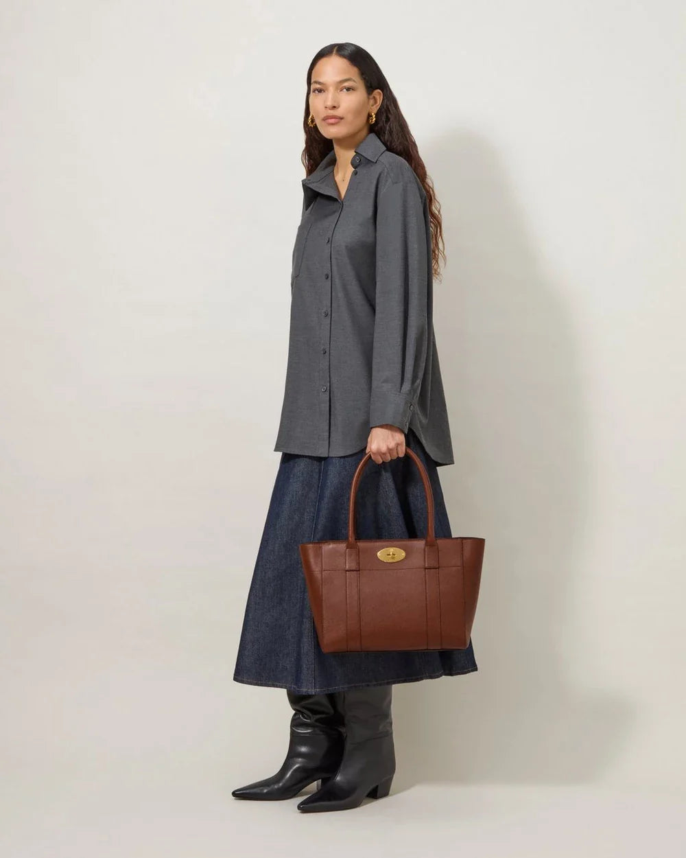 The Mulberry Bayswater 9 To 5 Two Tone delivers sophisticated everyday luxury with iconic British craftsmanship. Made from premium small classic grain leather in rich cognac brown, featuring the signature postman's lock and structured silhouette. The spacious interior and professional proportions make it ideal for modern working lifestyles.