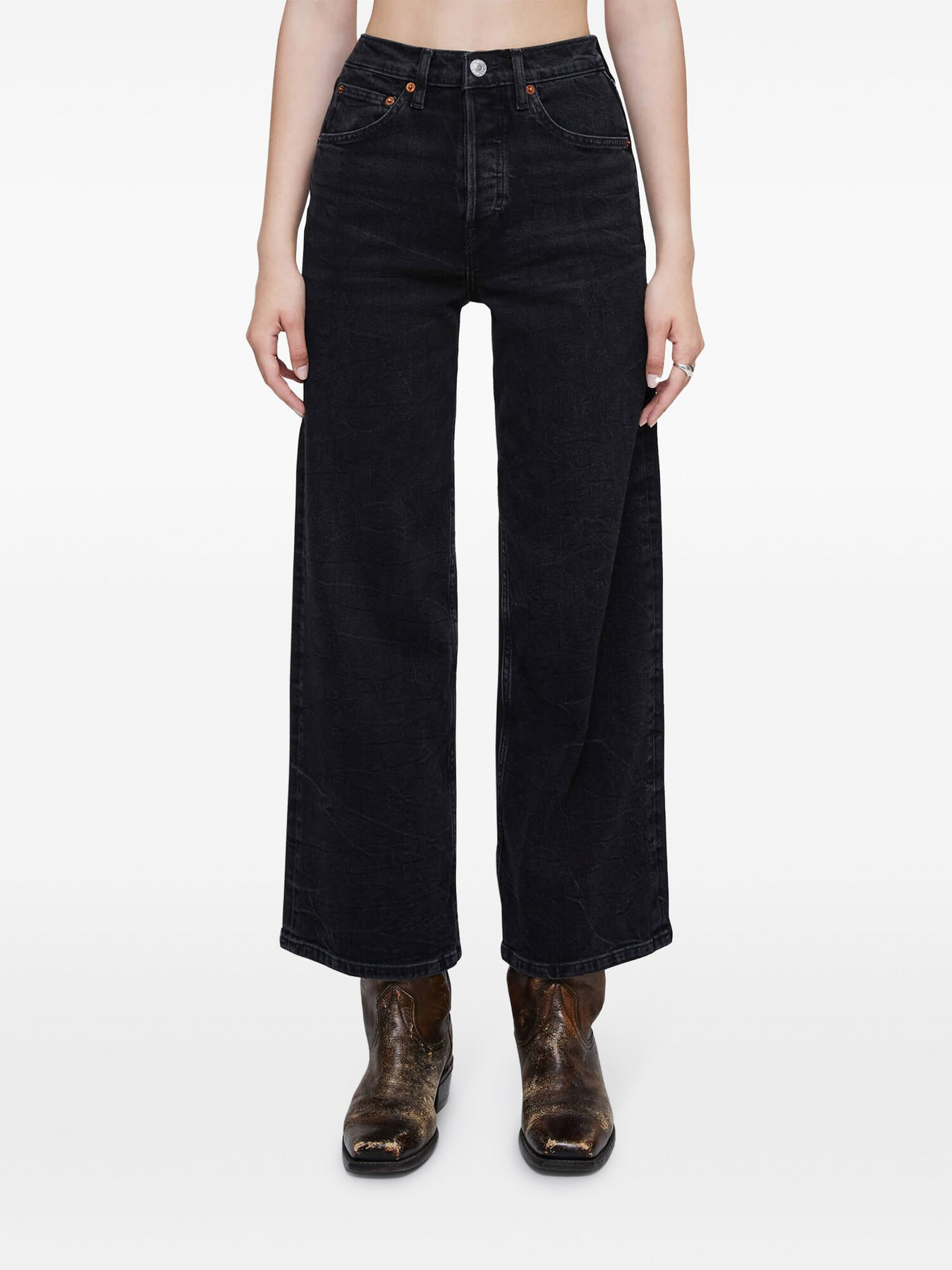 Quần jeans ống rộng cạp cao