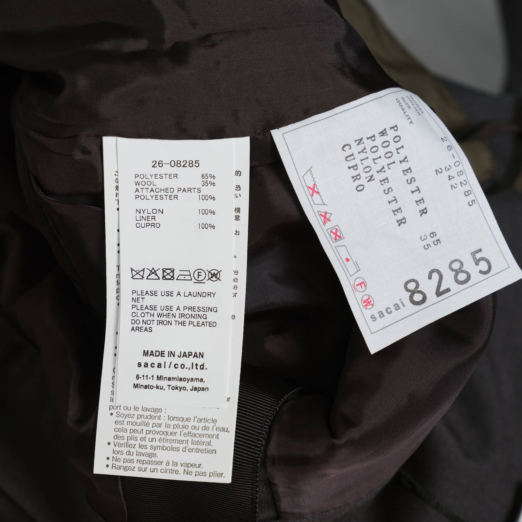 The sacai Suiting x Nylon Twill Skirt delivers avant-garde femininity through innovative material mixing and asymmetrical construction. Crafted from premium suiting fabric combined with technical nylon twill panels, featuring pleated inserts and cargo pocket details. The deconstructed silhouette with handkerchief hemline showcases sacai's signature hybrid design philosophy.