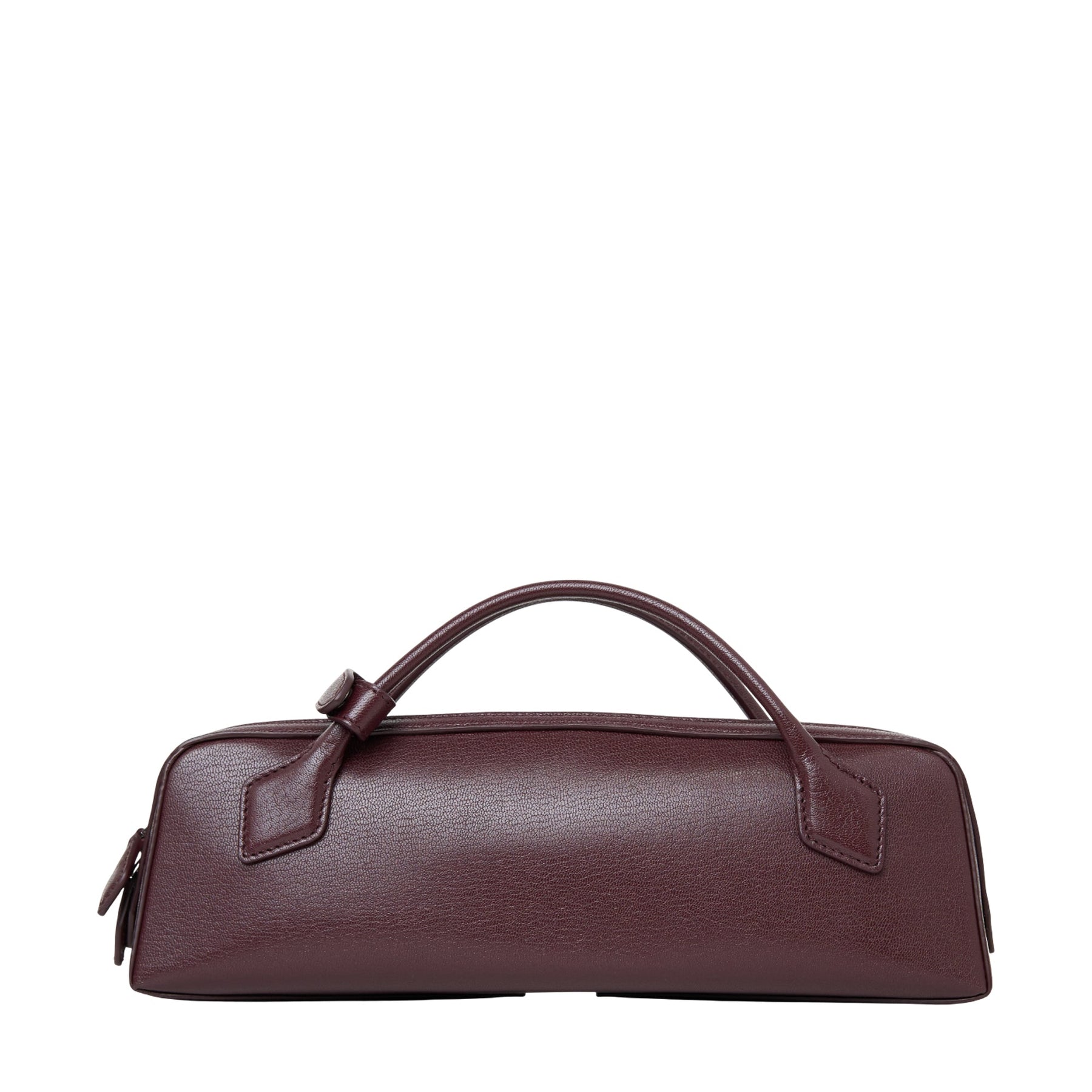 Goatskin leather with natural subtle grain and shiny finish adding relief to the bag