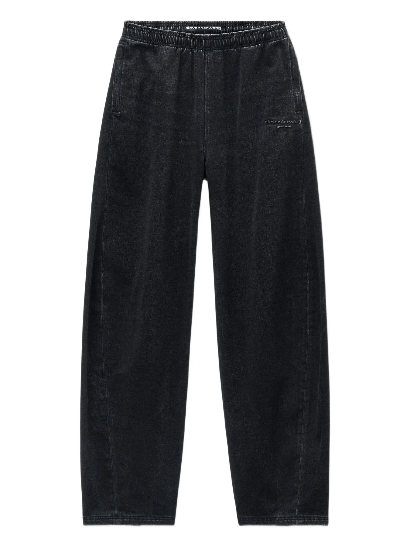 Sweatpant in faded black denim with an elasticated drawstring waist and silicone-filled classic logo at the front. Designed with an exaggerated oversized fit and wide rounded volume, it sits at mid rise and stacks at the hem.