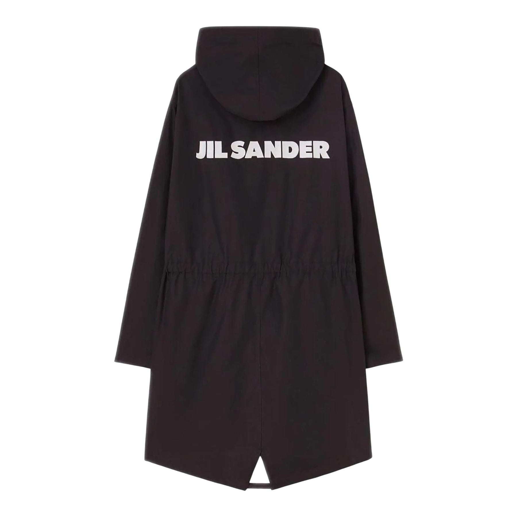 Merging minimalist style with functionality, this parka coat from Jil Sander is constructed from cotton into an slightly oversized silhouette. Featuring a cosy hood and press-stud fastening, the contrasting logo print to the rear offers a branded touch.