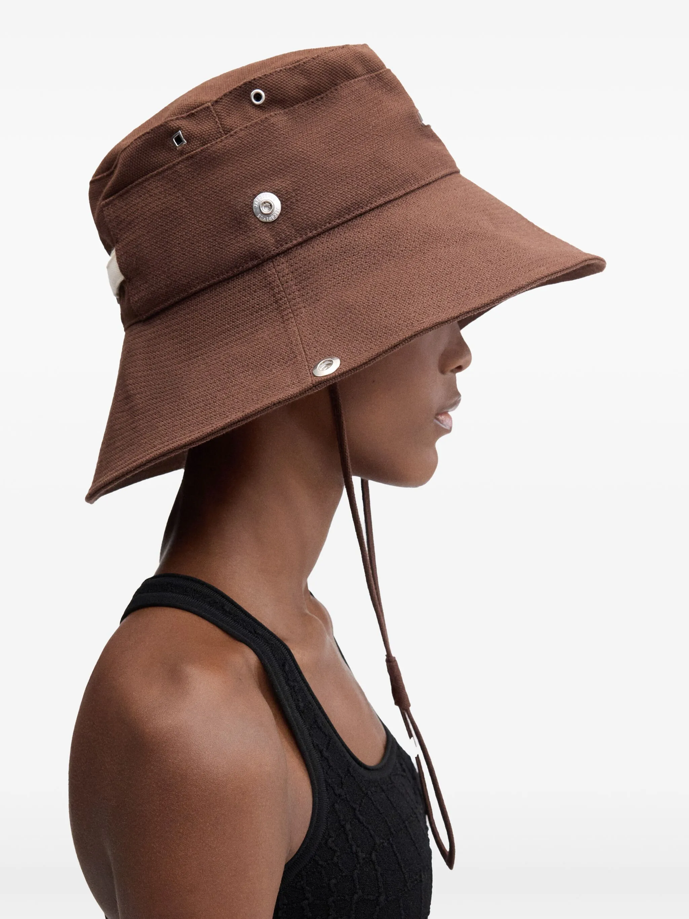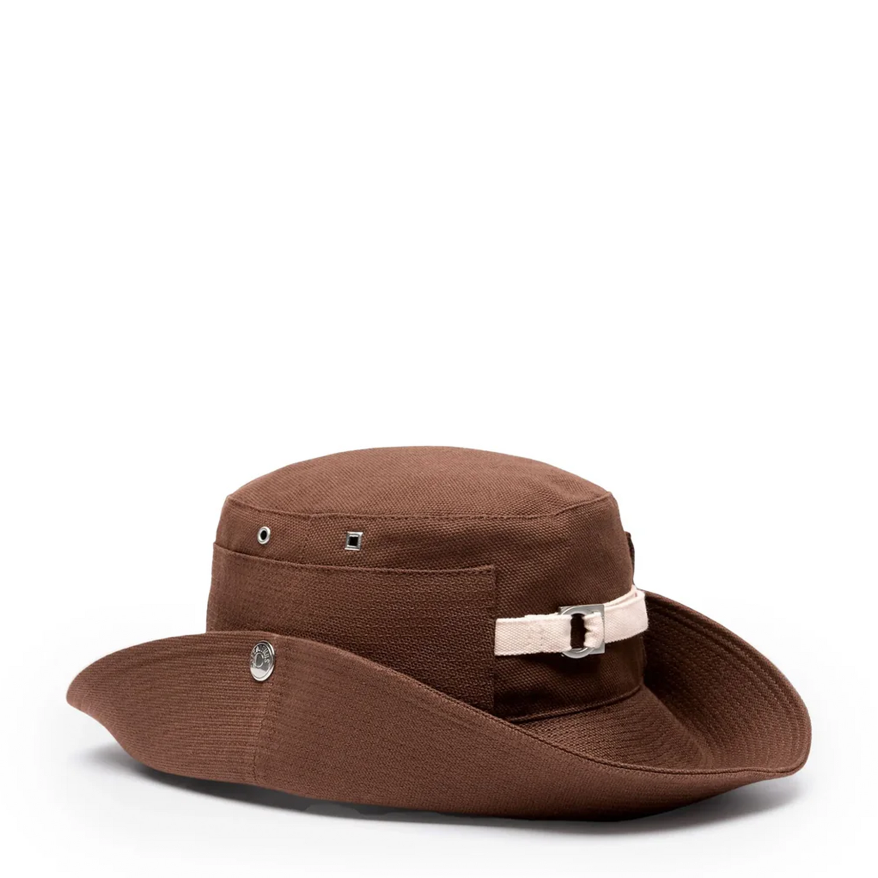 JACQUEMUS Le Bob Denimes delivers contemporary French luxury with modern bucket hat styling. Crafted from premium woven canvas in rich cognac brown, featuring signature minimalist construction and adjustable strap detailing. The structured silhouette and refined finishing create an elevated accessory for sophisticated wardrobes.