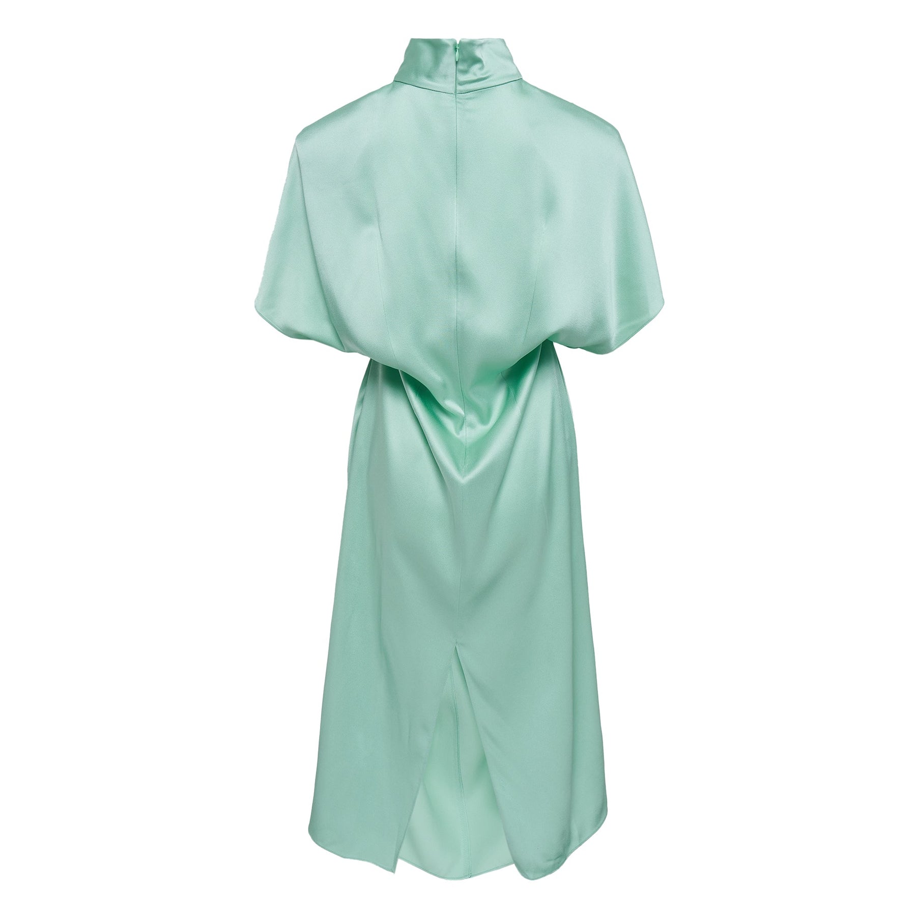 Spun from lustrous forest-friendly viscose satin, this cap-sleeved midi dress is defined by a knotted twist at the waist. Both a statement and a staple, it's topped with a high-neck and finishes at a calf-length hem.